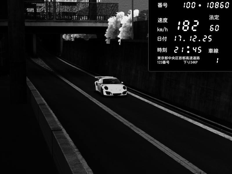 | 2025/12/17 21:30 | C1内回り 京橋 | 185 / 60 km/h | Porsche 911 GT3 RS | CAPTURE |