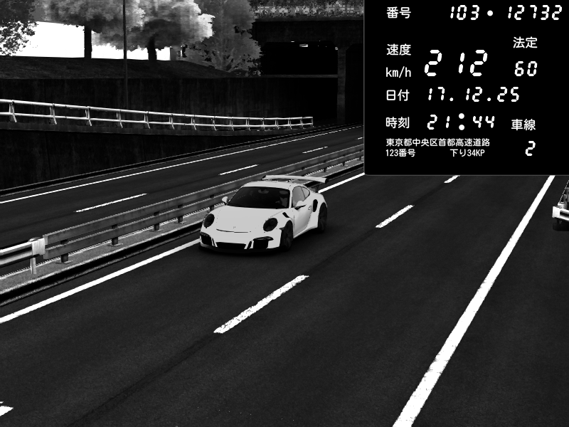 | 2025/12/17 21:44 | C1内回り 銀座 | 212 / 60 km/h | Porsche 911 GT3 RS | CAPTURE |