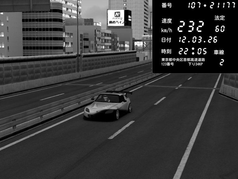 | 2026/03/12 22:00 | C1外回り 新富町 | 196 / 60 km/h | Honda S2000 (AP2 - Legendary) | CAPTURE |