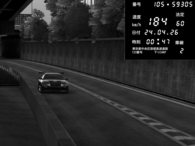 | 2026/04/24 00:47 | C1外回り 京橋 | 184 / 60 km/h | Toyota Supra MKIV Time Attack | CAPTURE |