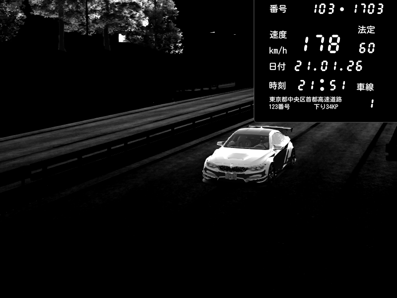 | 2026/01/21 21:52 | C1内回り 銀座 | 178 / 60 km/h | BMW M4 crash.Sp Varis Widebody | CAPTURE |
