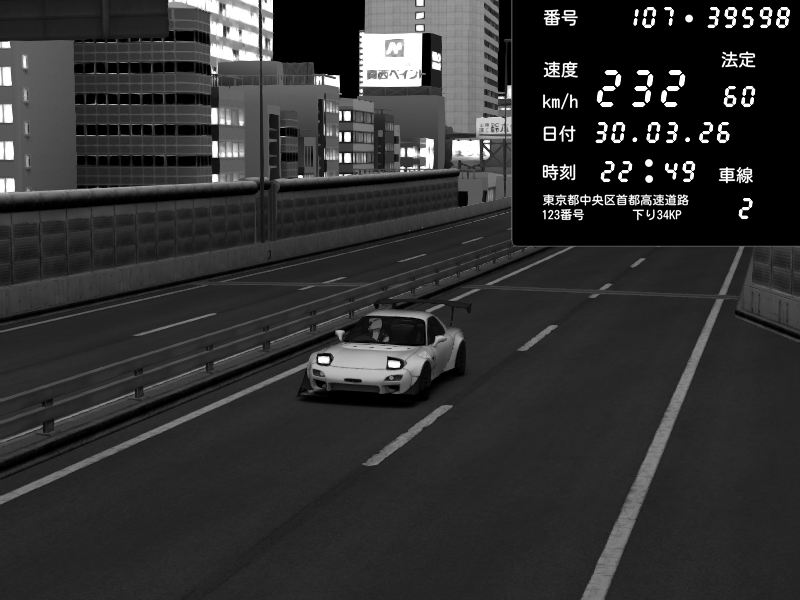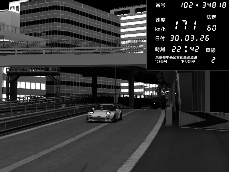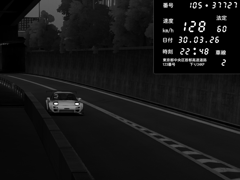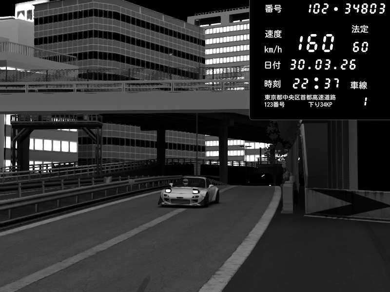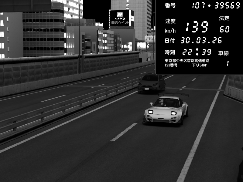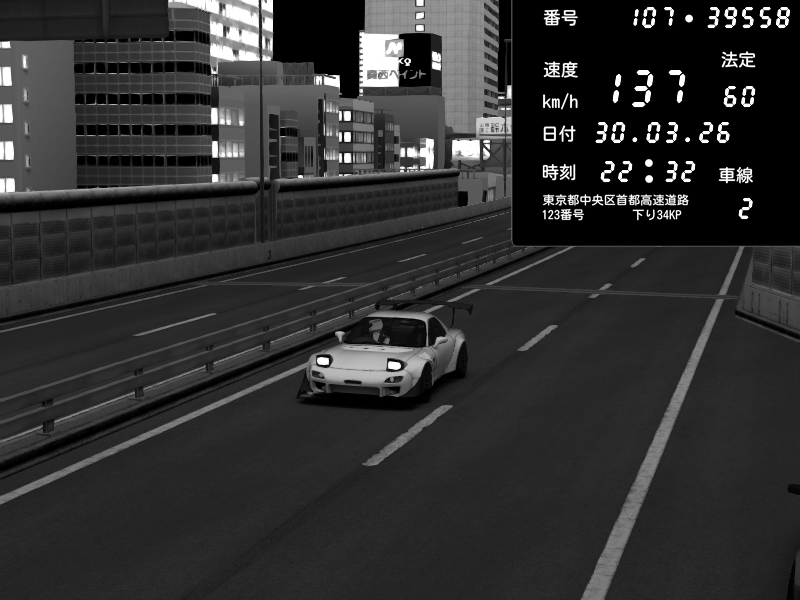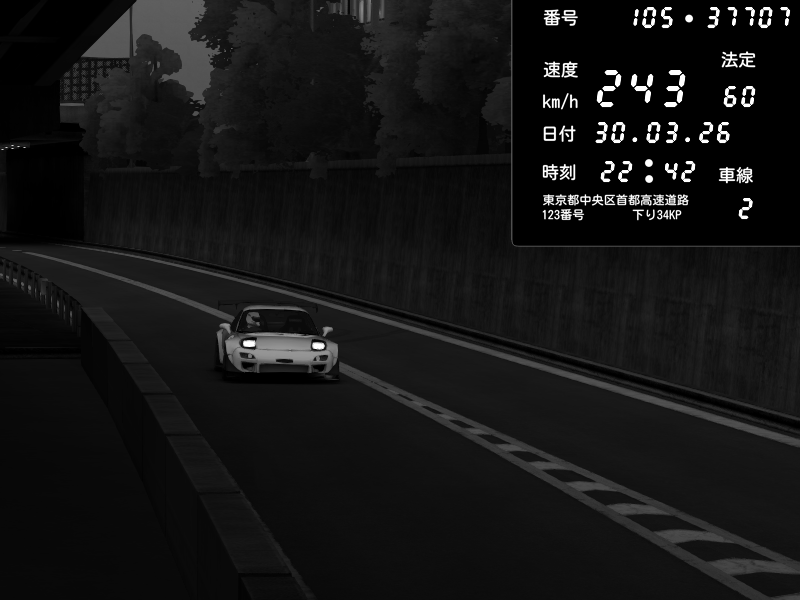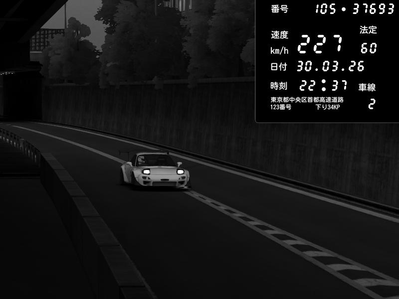 | 2026/03/30 22:48 | C1外回り 京橋 | 128 / 60 km/h | Mazda RX-7 FD3S FEED Afflux GT3 | CAPTURE |