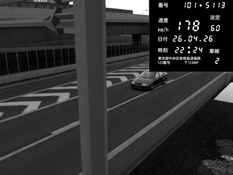 | 2026/04/26 22:24 | C1内回り 竹橋JCT | 178 / 60 km/h | Mitsubishi Lancer Evolution V Wangan Spec | CAPTURE |