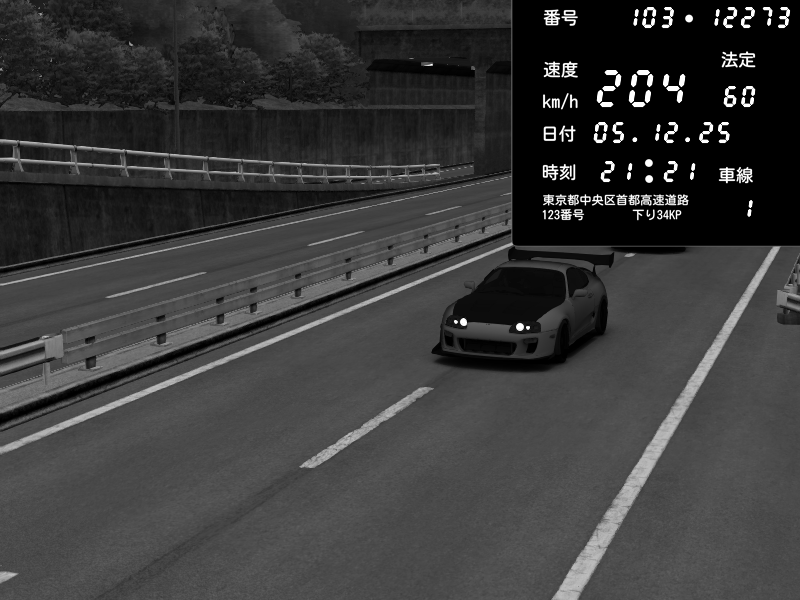 | 2025/12/05 21:21 | C1内回り 銀座 | 204 / 60 km/h | Toyota Supra MKIV Time Attack | CAPTURE |