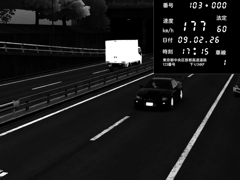 | 2026/02/09 17:15 | C1内回り 京橋 | 178 / 60 km/h | Nissan Skyline GT-R R34 Nismo Omori Factory S1 | CAPTURE |