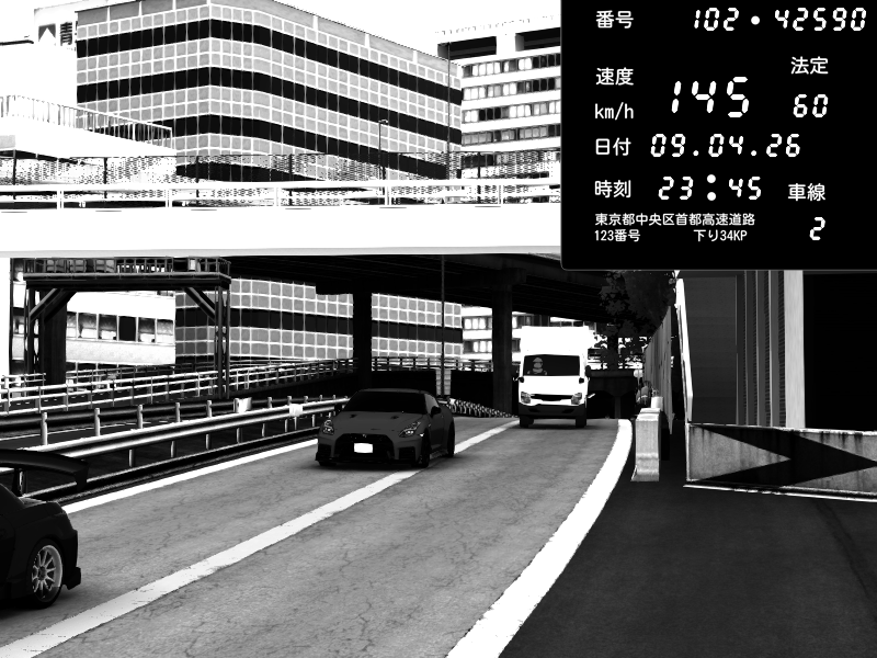 | 2026/04/09 23:45 | C1外回り 新富町 | 145 / 60 km/h | Nissan GT-R NISMO 2017 | CAPTURE |