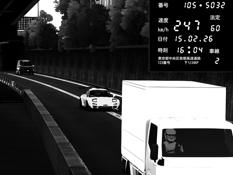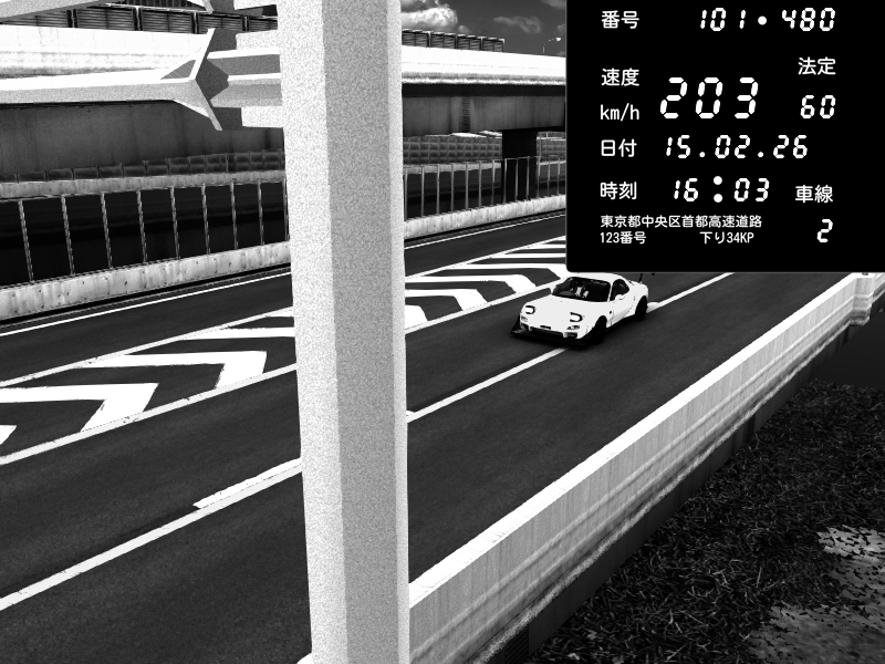 | 2026/02/15 16:03 | C1内回り 竹橋JCT | 203 / 60 km/h | Mazda RX-7 FD3S FEED Afflux GT3 | CAPTURE |