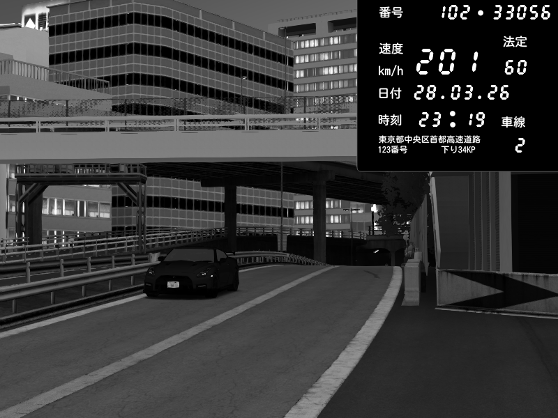 | 2026/03/28 23:19 | C1外回り 新富町 | 201 / 60 km/h | Nissan GT-R NISMO 2017 | CAPTURE |
