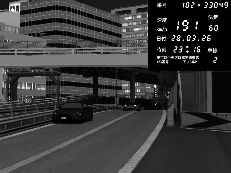 | 2026/03/28 23:16 | C1外回り 新富町 | 191 / 60 km/h | Nissan GT-R NISMO 2017 | CAPTURE |