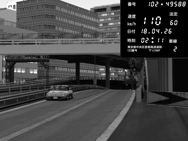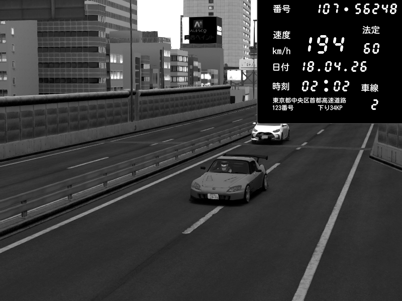 | 2026/04/18 02:10 | C1外回り 京橋 | 233 / 60 km/h | Honda S2000 (AP2 - Legendary) | CAPTURE |