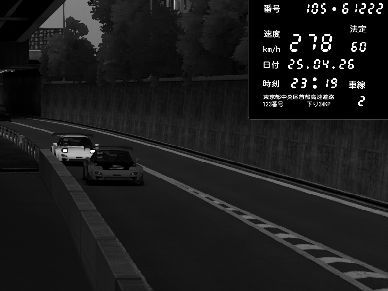 | 2026/04/25 23:23 | C1外回り 京橋 | 289 / 60 km/h | Mazda RX-7 FD3S FEED Afflux GT3 | CAPTURE |