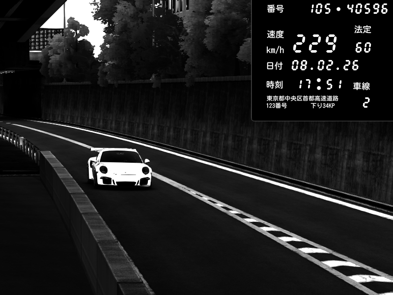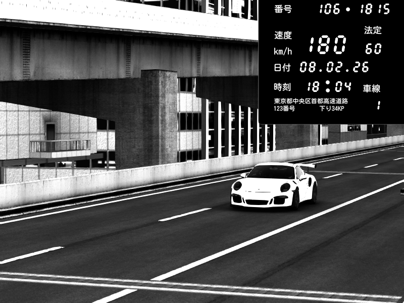 | 2026/02/08 18:31 | 4号下り 代々木 | 145 / 60 km/h | Porsche 911 GT3 RS | CAPTURE |