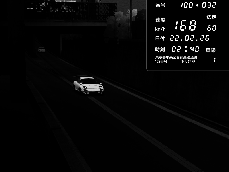 | 2026/02/22 03:00 | 4号下り 代々木 | 156 / 60 km/h | Mazda RX-7 FD3S FEED Afflux GT3 | CAPTURE |