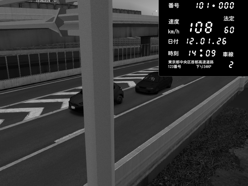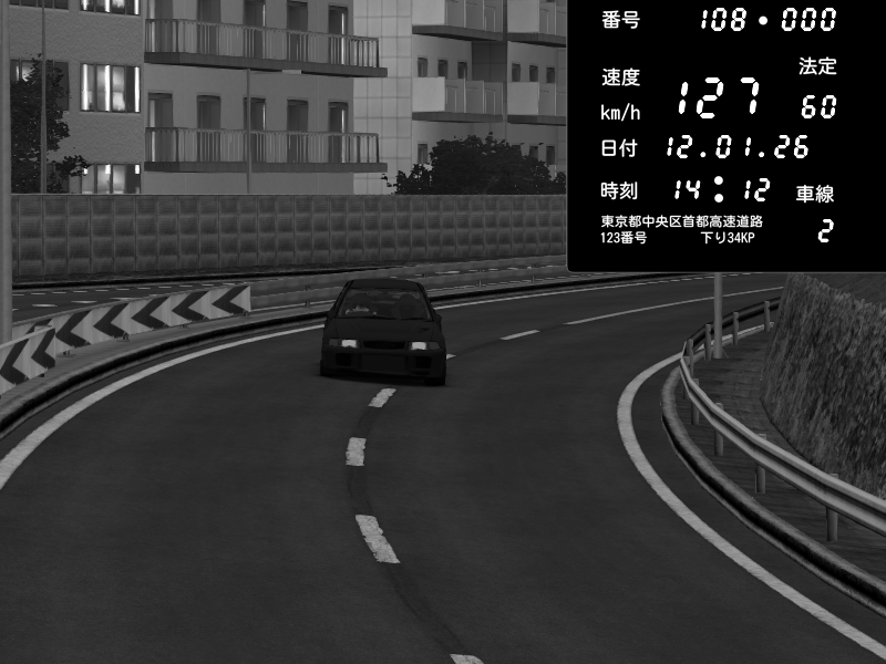 | 2026/01/12 14:09 | C1内回り 竹橋JCT | 108 / 60 km/h | Mitsubishi Lancer Evolution V Wangan Spec | CAPTURE |