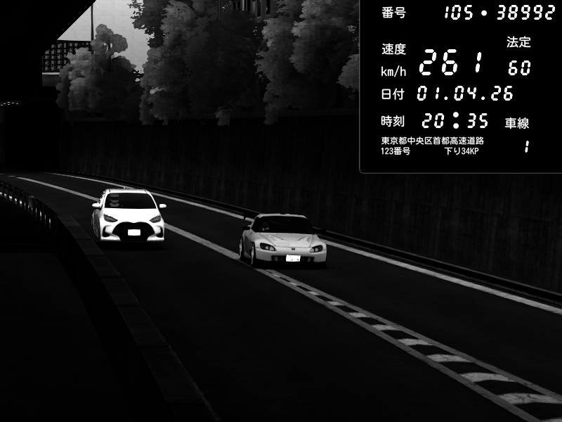 | 2026/04/01 20:36 | C1外回り 芝公園 | 239 / 60 km/h | Honda S2000 (AP2 - Legendary) | CAPTURE |