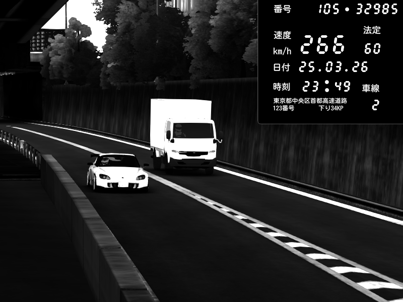 | 2026/03/25 23:49 | C1外回り 京橋 | 266 / 60 km/h | Honda S2000 (AP2 - Legendary) | CAPTURE |
