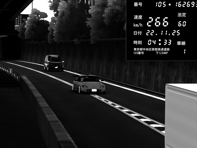 | 2025/11/22 04:33 | C1外回り 京橋 | 266 / 60 km/h | Honda S2000 (AP2 - Legendary) | CAPTURE |