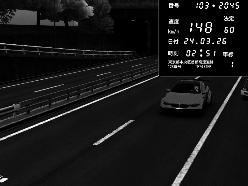 | 2026/03/24 02:51 | C1内回り 銀座 | 148 / 60 km/h | BMW M4 crash.Sp Varis Widebody | CAPTURE |