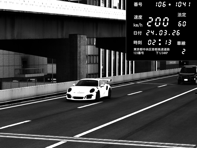 | 2026/03/18 20:46 | C1外回り 新富町 | 141 / 60 km/h | Porsche 911 GT3 RS | CAPTURE |