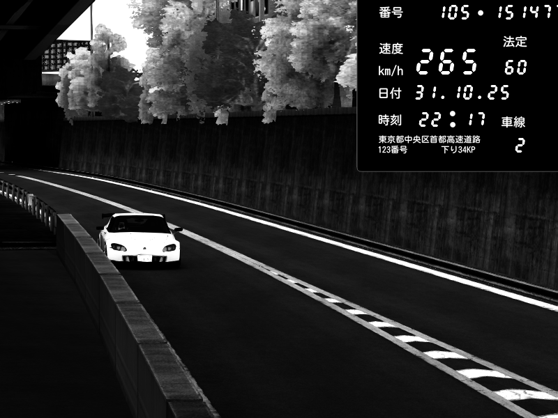 | 2025/10/31 22:17 | C1外回り 京橋 | 265 / 60 km/h | Honda S2000 (AP2 - Legendary) | CAPTURE |