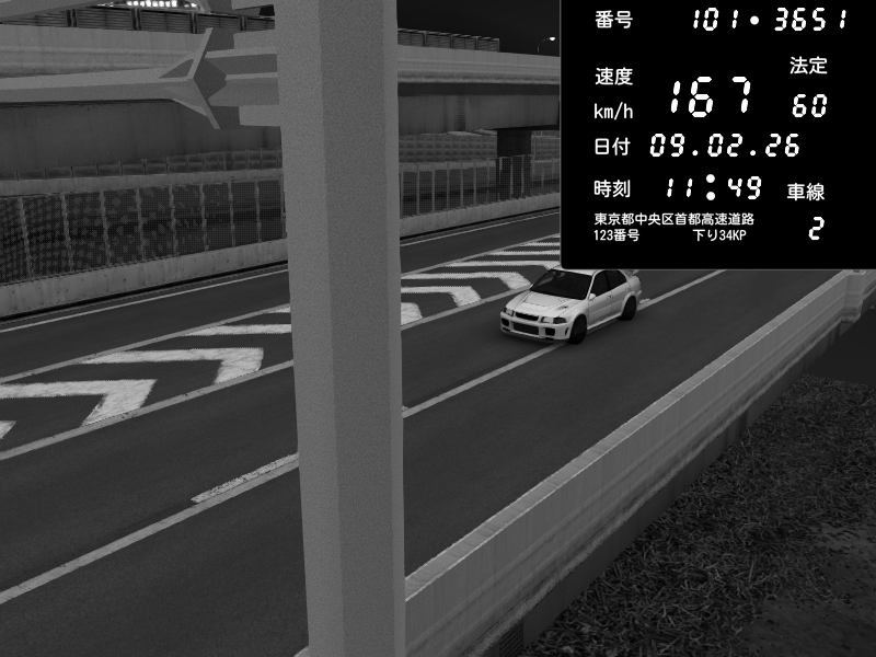 | 2026/02/09 11:49 | C1内回り 竹橋JCT | 167 / 60 km/h | Mitsubishi Lancer Evolution V Wangan Spec | CAPTURE |