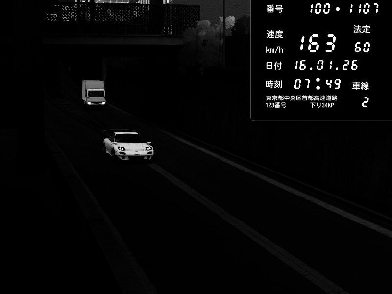 | 2026/01/16 07:49 | C1内回り 京橋 | 163 / 60 km/h | Mazda RX-7 FD3S RE Amemiya | CAPTURE |