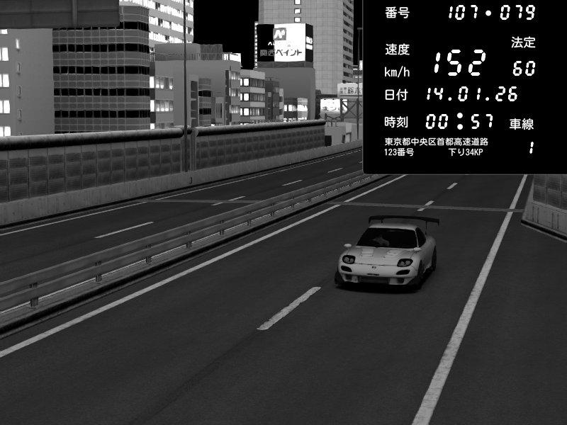 | 2026/01/14 00:48 | C1内回り 銀座 | 209 / 60 km/h | Mazda RX-7 FD3S RE Amemiya | CAPTURE |