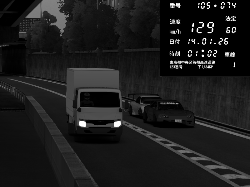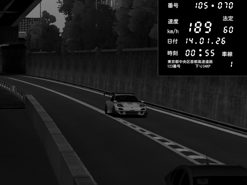 | 2026/01/14 00:51 | C1内回り 銀座 | 174 / 60 km/h | Mazda RX-7 FD3S RE Amemiya | CAPTURE |