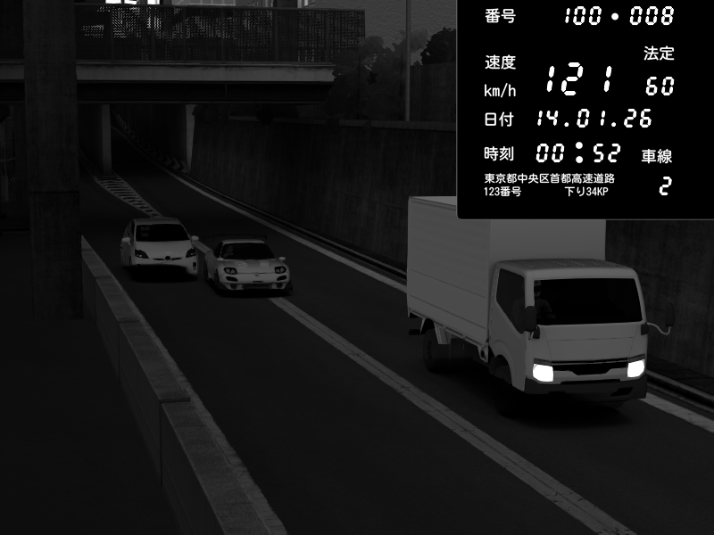 | 2026/01/14 00:52 | C1内回り 京橋 | 121 / 60 km/h | Mazda RX-7 FD3S RE Amemiya | CAPTURE |