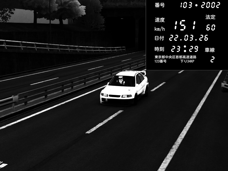 | 2026/03/22 23:29 | C1内回り 銀座 | 151 / 60 km/h | Mitsubishi Lancer Evolution V Wangan Spec | CAPTURE |