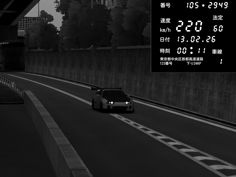 | 2026/02/13 00:52 | C1外回り 京橋 | 254 / 60 km/h | Toyota Supra MKIV Time Attack | CAPTURE |