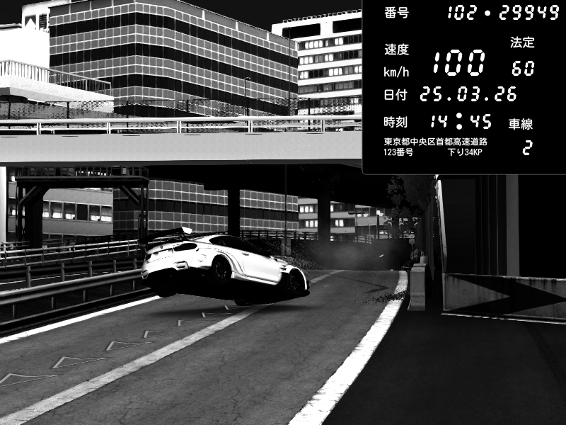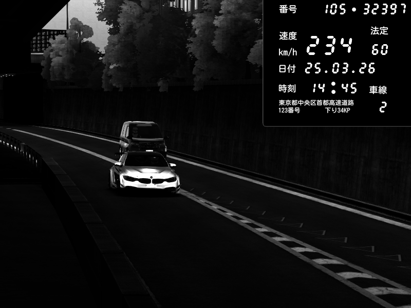 | 2026/03/25 14:45 | C1外回り 新富町 | 100 / 60 km/h | BMW M4 crash.Sp Varis Widebody | CAPTURE |