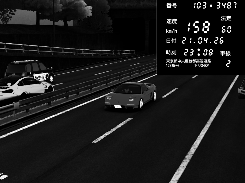 | 2026/04/21 23:08 | C1内回り 銀座 | 158 / 60 km/h | Honda NSX [NA1] PVLSX | CAPTURE |