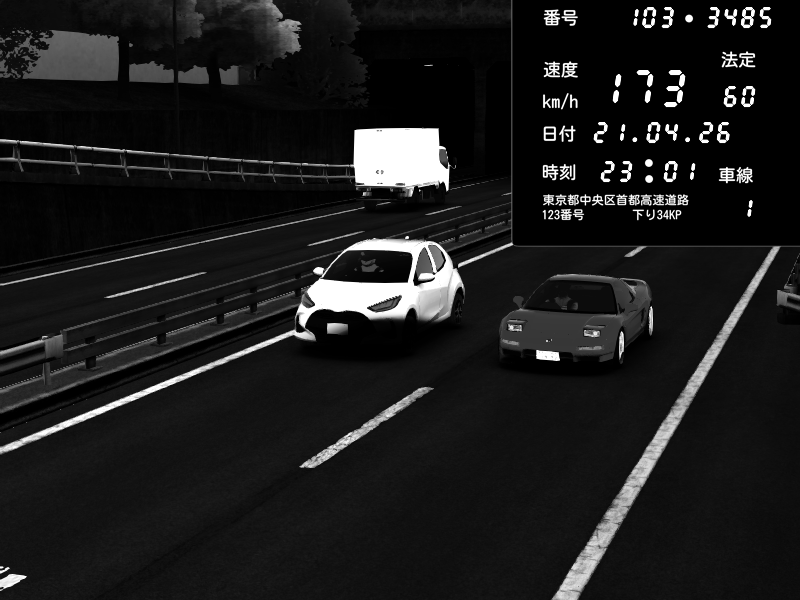 | 2026/04/21 23:01 | C1内回り 銀座 | 173 / 60 km/h | Honda NSX [NA1] PVLSX | CAPTURE |