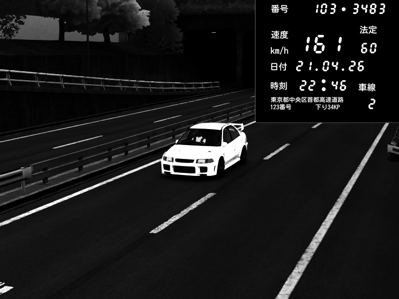 | 2026/04/21 22:20 | C1内回り 銀座 | 158 / 60 km/h | Mitsubishi Lancer Evolution V Wangan Spec | CAPTURE |