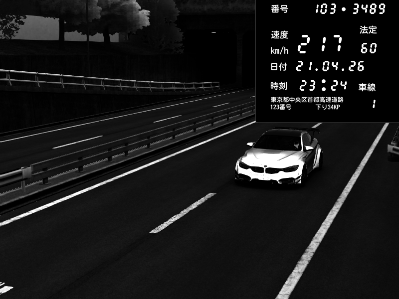 | 2026/04/21 23:24 | C1内回り 銀座 | 217 / 60 km/h | BMW M4 crash.Sp Varis Widebody | CAPTURE |