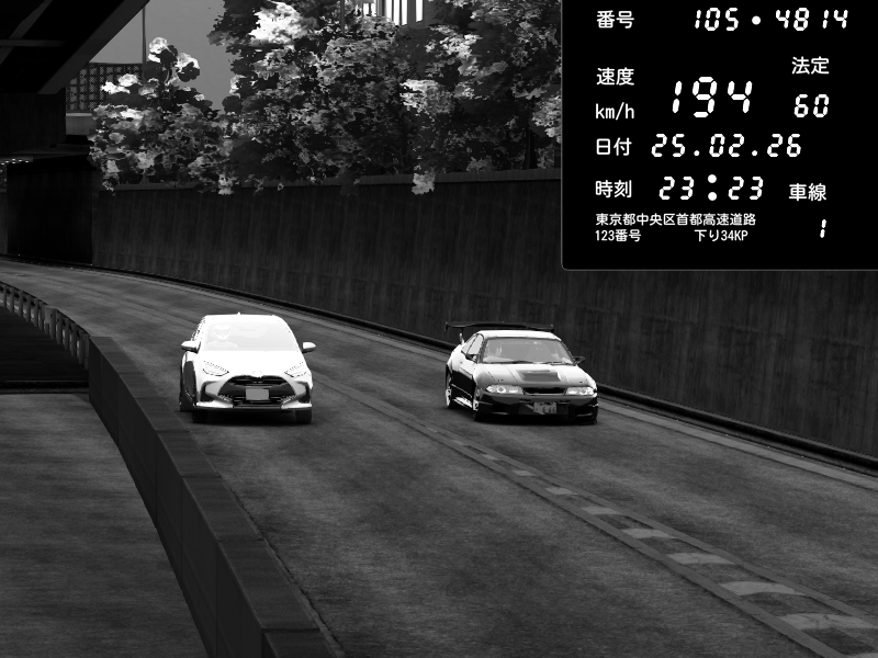 | 2026/02/25 23:23 | C1外回り 京橋 | 194 / 60 km/h | Nissan Skyline GTR R33 (S3 - Wangan) | CAPTURE |