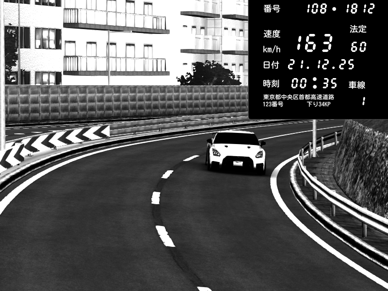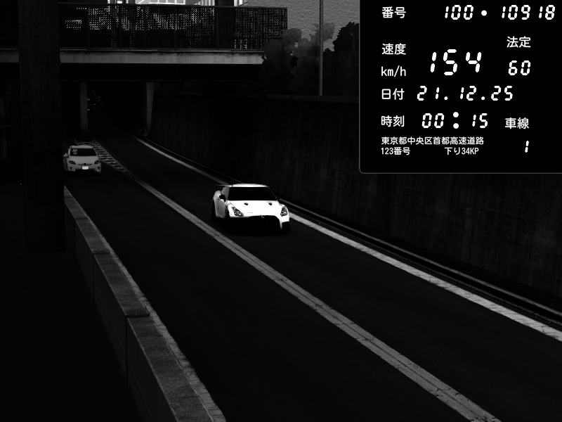 | 2025/12/21 00:33 | C1内回り 竹橋JCT | 130 / 60 km/h | Nissan GT-R NISMO 2017 | CAPTURE |
