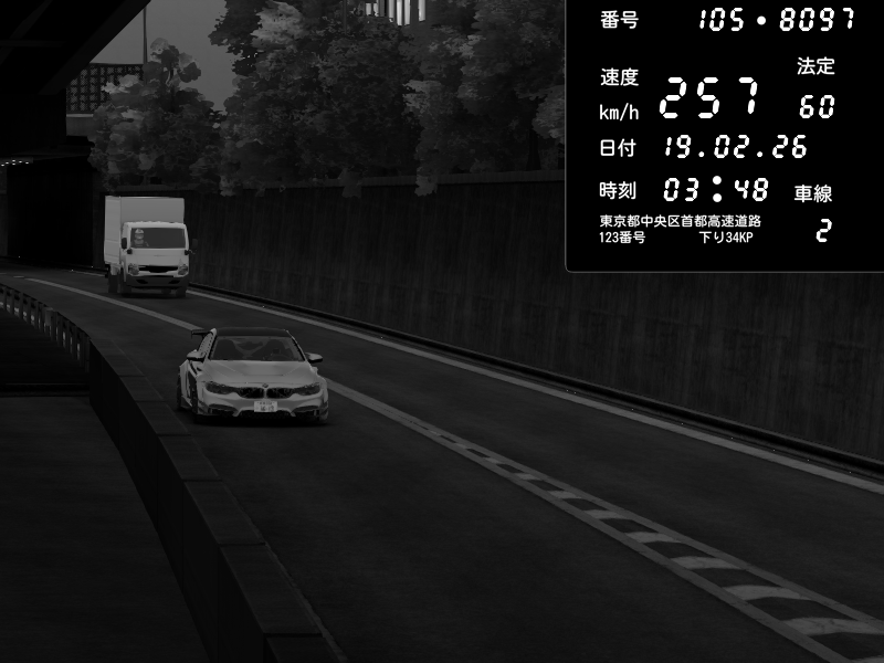 | 2026/02/19 03:48 | C1外回り 京橋 | 257 / 60 km/h | BMW M4 crash.Sp Varis Widebody | CAPTURE |
