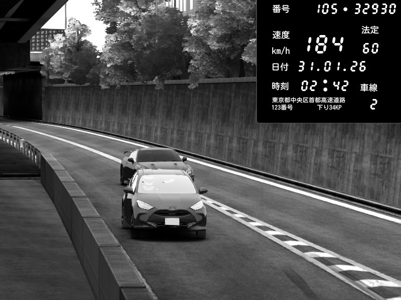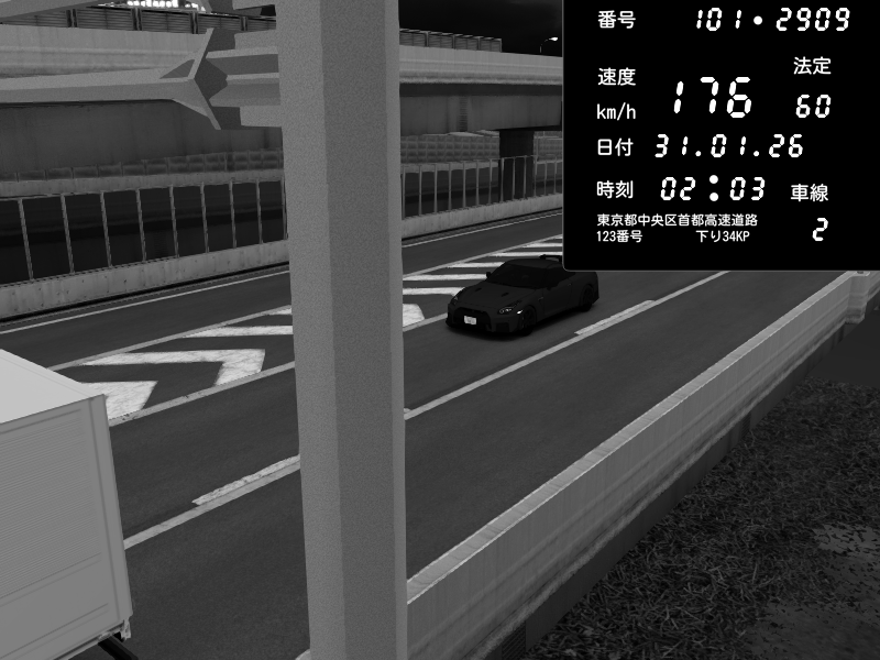 | 2026/01/31 02:42 | C1外回り 京橋 | 184 / 60 km/h | Nissan GT-R NISMO 2017 | CAPTURE |