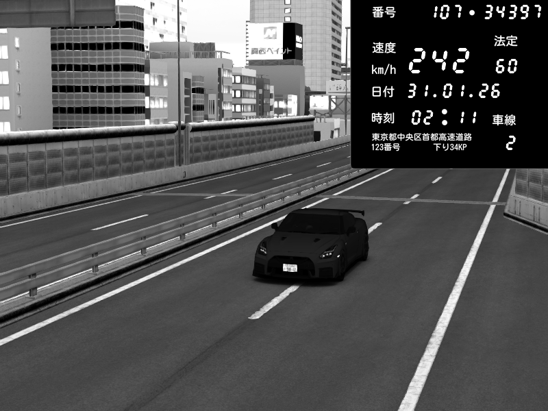| 2026/01/31 02:39 | C1外回り 京橋 | 226 / 60 km/h | Nissan GT-R NISMO 2017 | CAPTURE |