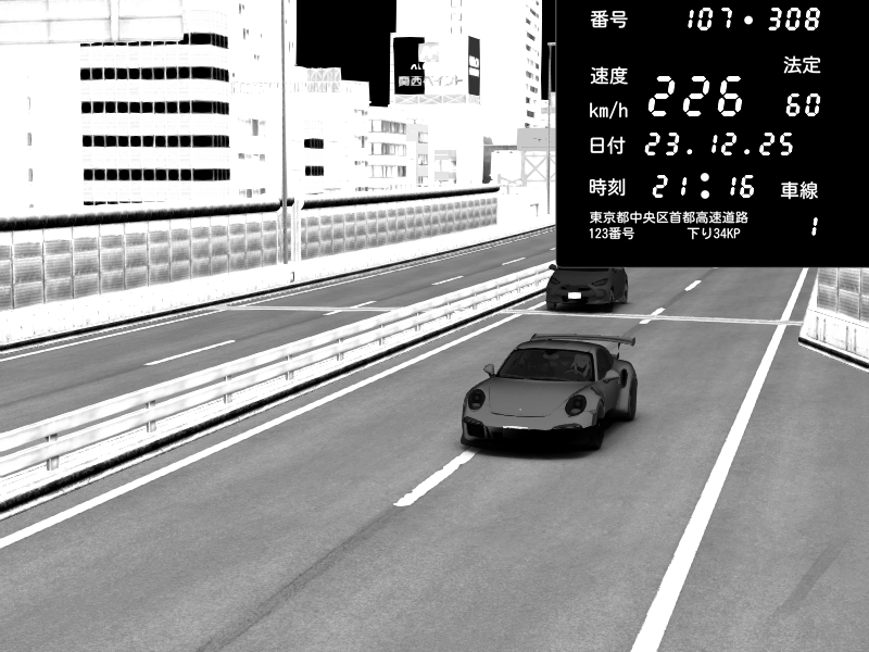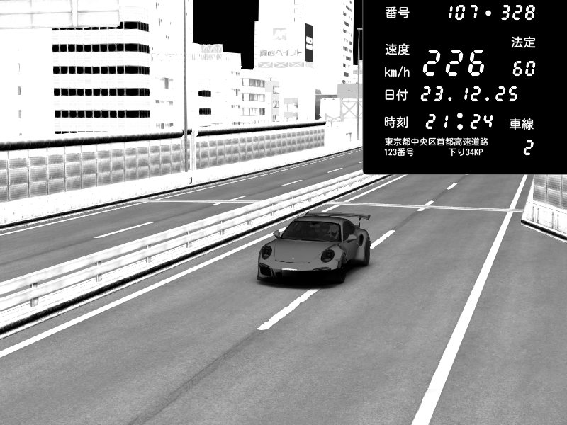 | 2025/12/23 21:22 | C1外回り 新富町 | 132 / 60 km/h | Porsche 911 GT3 RS | CAPTURE |