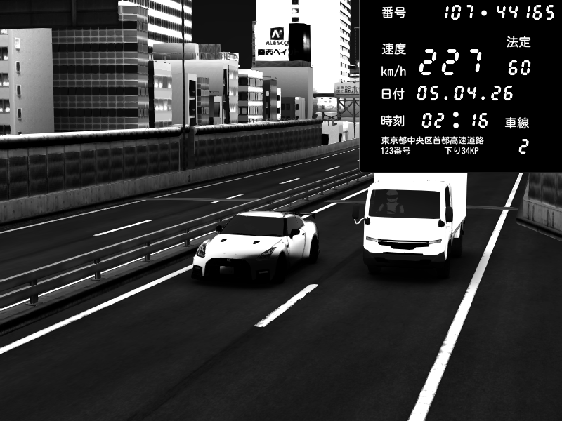 | 2026/04/05 02:33 | C1外回り 京橋 | 166 / 60 km/h | Nissan GT-R NISMO 2017 | CAPTURE |