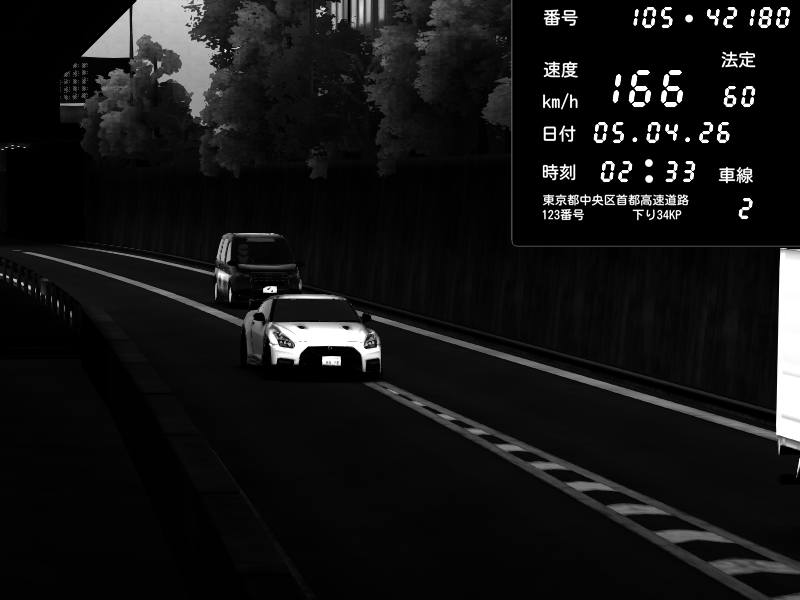 | 2026/04/05 02:29 | C1外回り 芝公園 | 232 / 60 km/h | Nissan GT-R NISMO 2017 | CAPTURE |