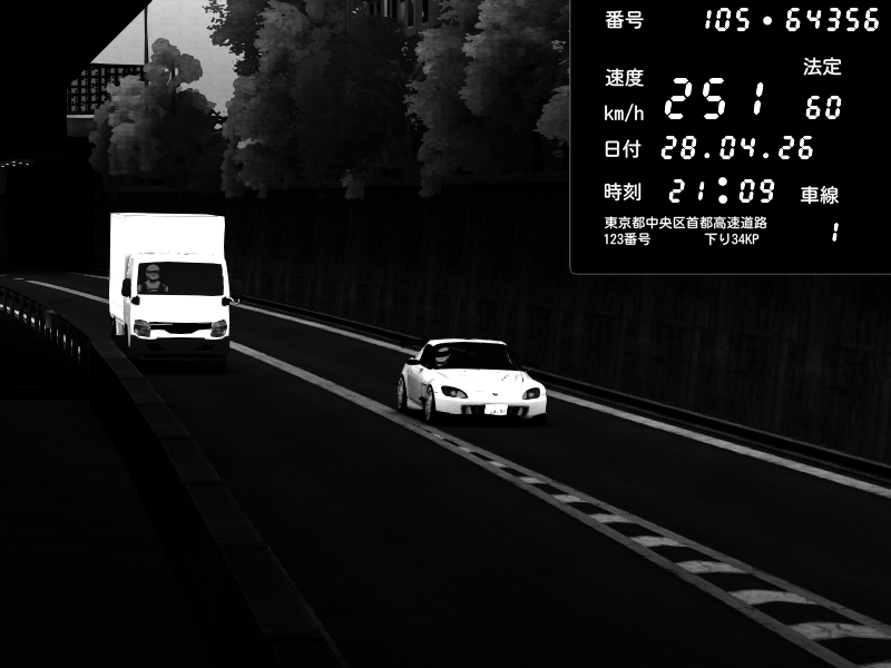 | 2026/04/28 21:09 | C1外回り 新富町 | 190 / 60 km/h | Honda S2000 (AP2 - Legendary) | CAPTURE |