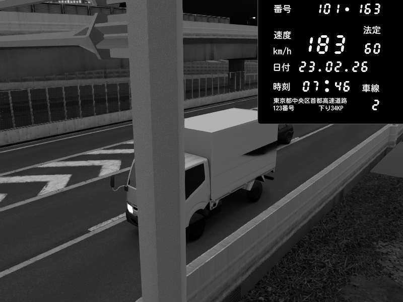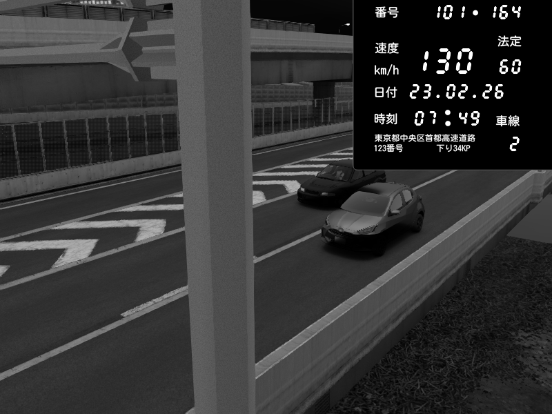 | 2026/02/23 08:17 | C1内回り 竹橋JCT | 153 / 60 km/h | Mitsubishi Lancer Evolution V Wangan Spec | CAPTURE |