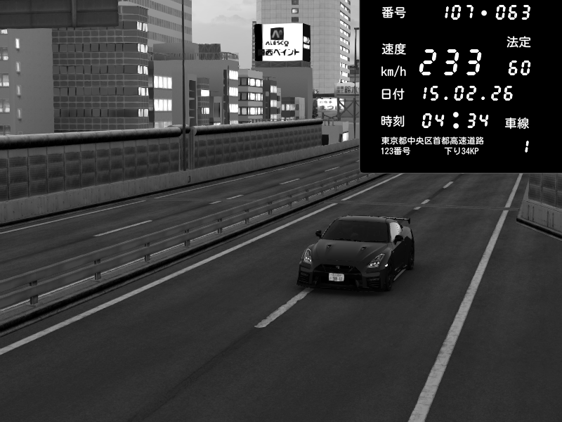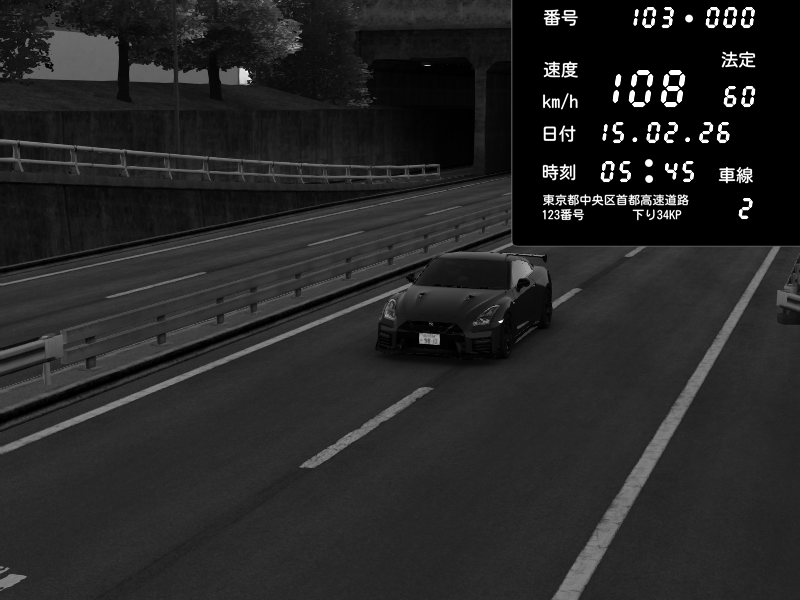 | 2026/02/15 04:43 | C1外回り 京橋 | 127 / 60 km/h | Nissan GT-R NISMO 2017 | CAPTURE |