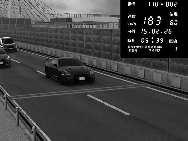 | 2026/02/15 05:39 | K1上り 羽田 | 183 / 60 km/h | Nissan GT-R NISMO 2017 | CAPTURE |