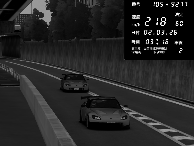 | 2026/03/02 03:16 | C1外回り 京橋 | 218 / 60 km/h | Honda S2000 (AP2 - Legendary) | CAPTURE |