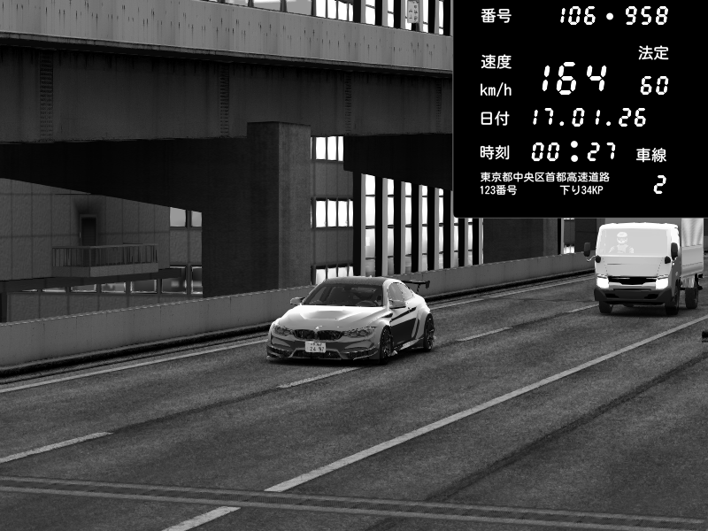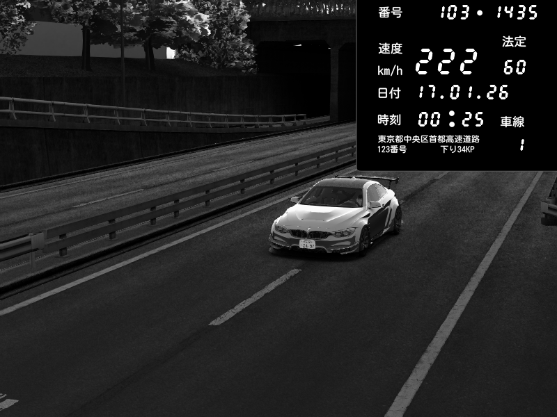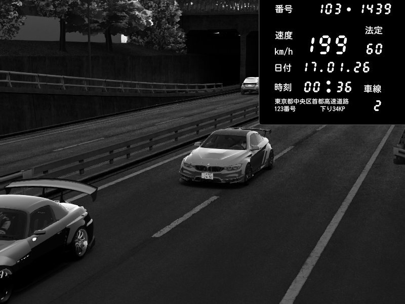 | 2026/01/17 00:36 | C1内回り 銀座 | 199 / 60 km/h | BMW M4 crash.Sp Varis Widebody | CAPTURE |